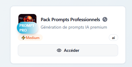 Avec le Générateur de Prompts Pro, vous accédez à une bibliothèque de